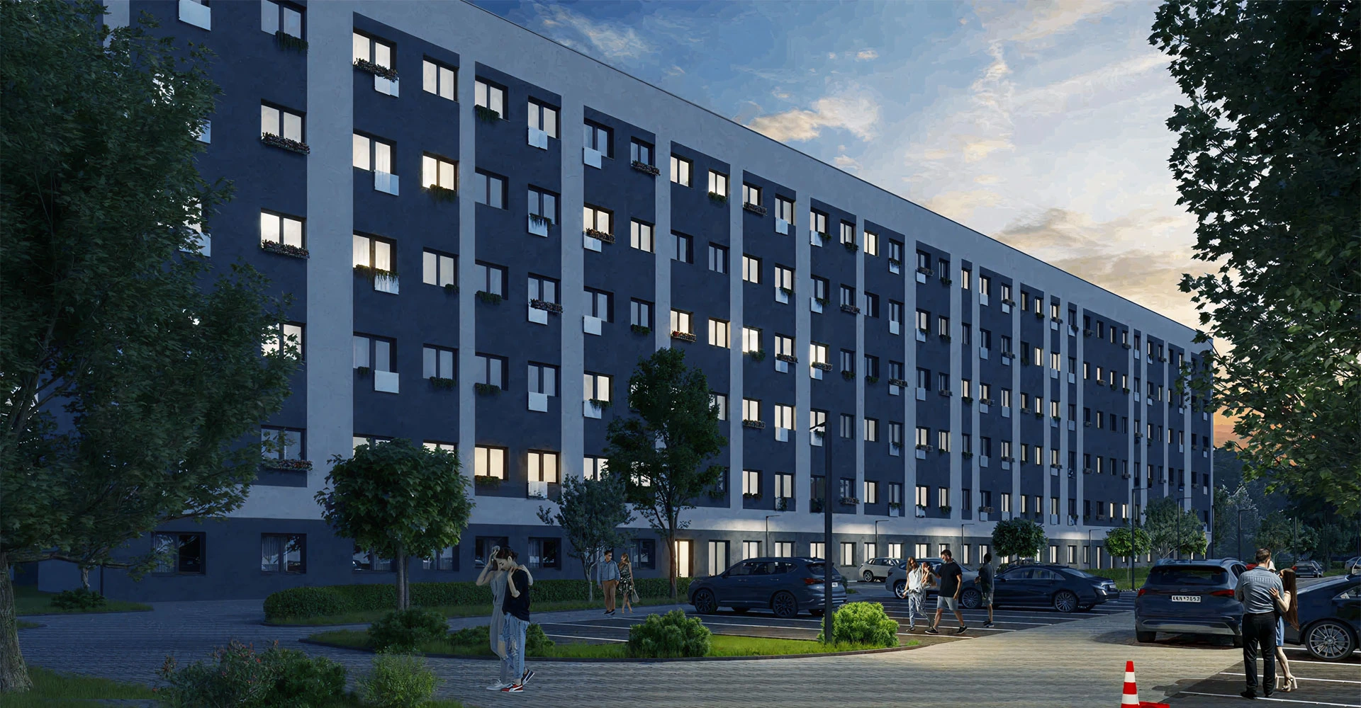 Projekt zakłada realizację 160 komfortowych mieszkań z komórkami lokatorskimi i zewnętrznymi miejscami parkingowymi.